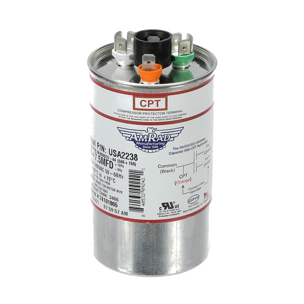 Trane Capacitor; 50/7.5Mfd 370/440V Rd Usa Made Part# USA2238