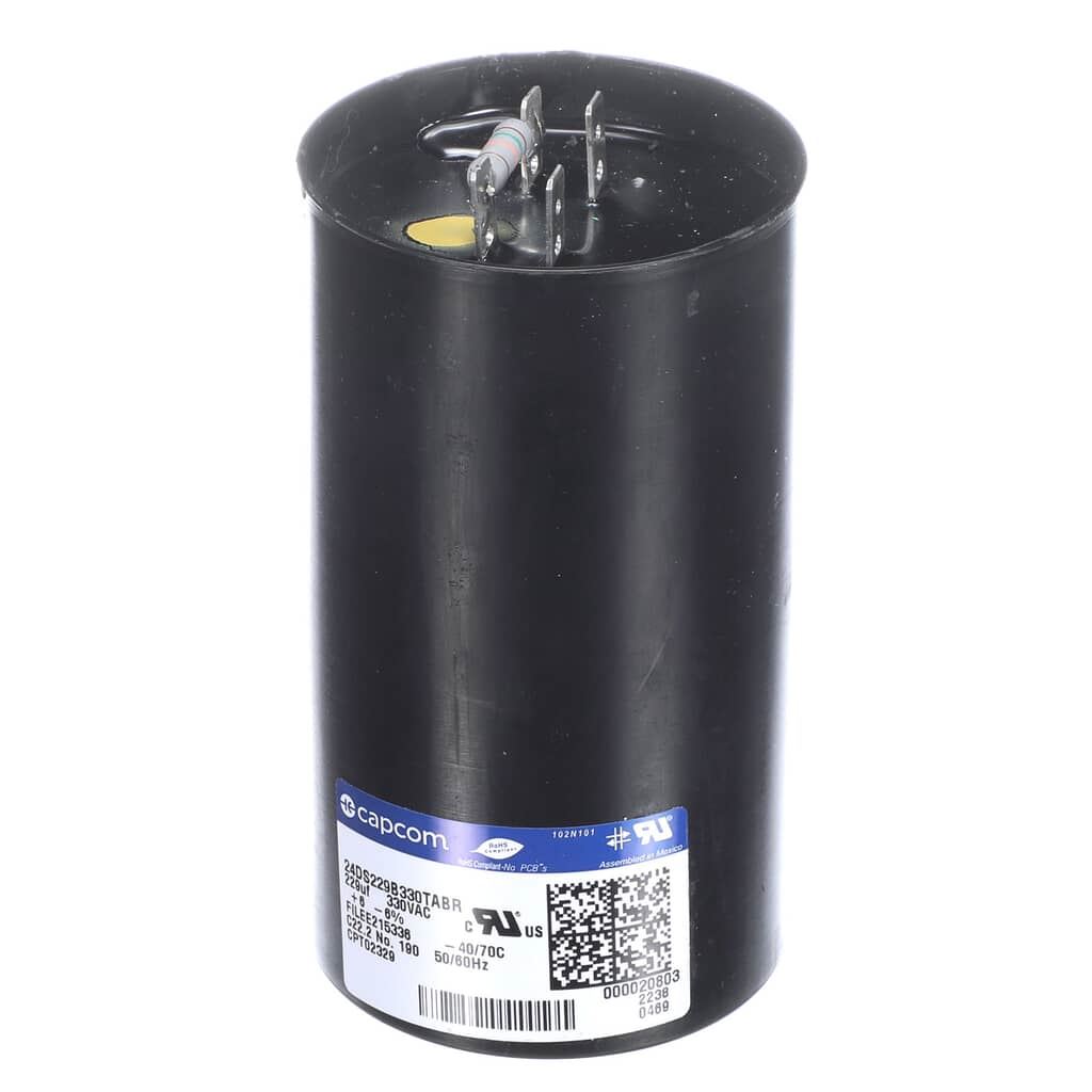 Trane Capacitor; Start, 229 +/- 5 Mfd, 330V, Round, W/ R Part# CPT02329