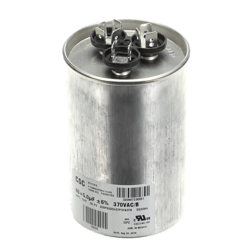 York Dual Run Capacitor, 60/5Mfd,370v,round Part# S1-02425033700